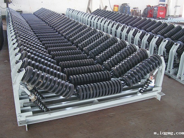 (4)缓冲托辊有弹簧板型托辊、缓冲圈型托辊、强力缓冲型托辊、可调弹力型托辊、吊挂型托辊等;